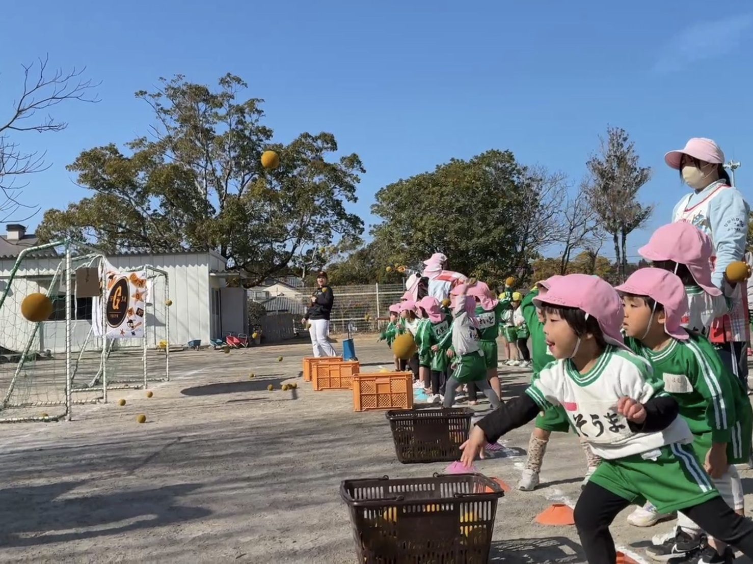 2月2日(月)、オファサポート BASEBALL ACADEMY 宮崎 Supported by 読売GIANTSがジャビット君、元VENUSの伊藤るうなさん、そして読売ジャイアンツ女子チーム現役プロ選手の相見 菜月さんを迎え、日頃より園庭スクールを実施している光が丘幼稚園を訪問しました。