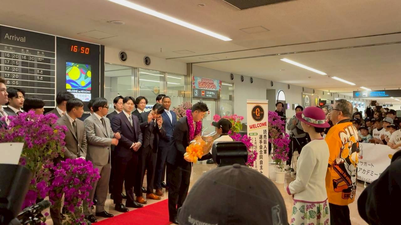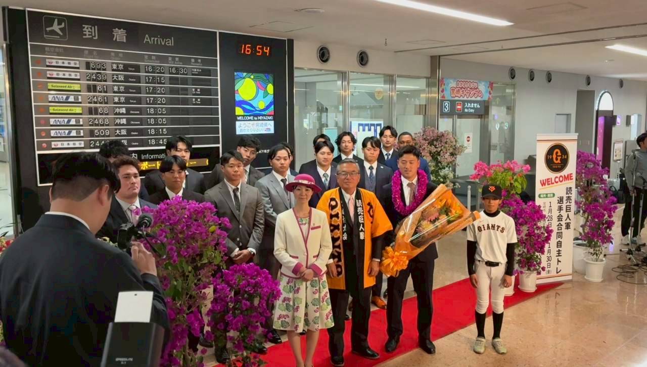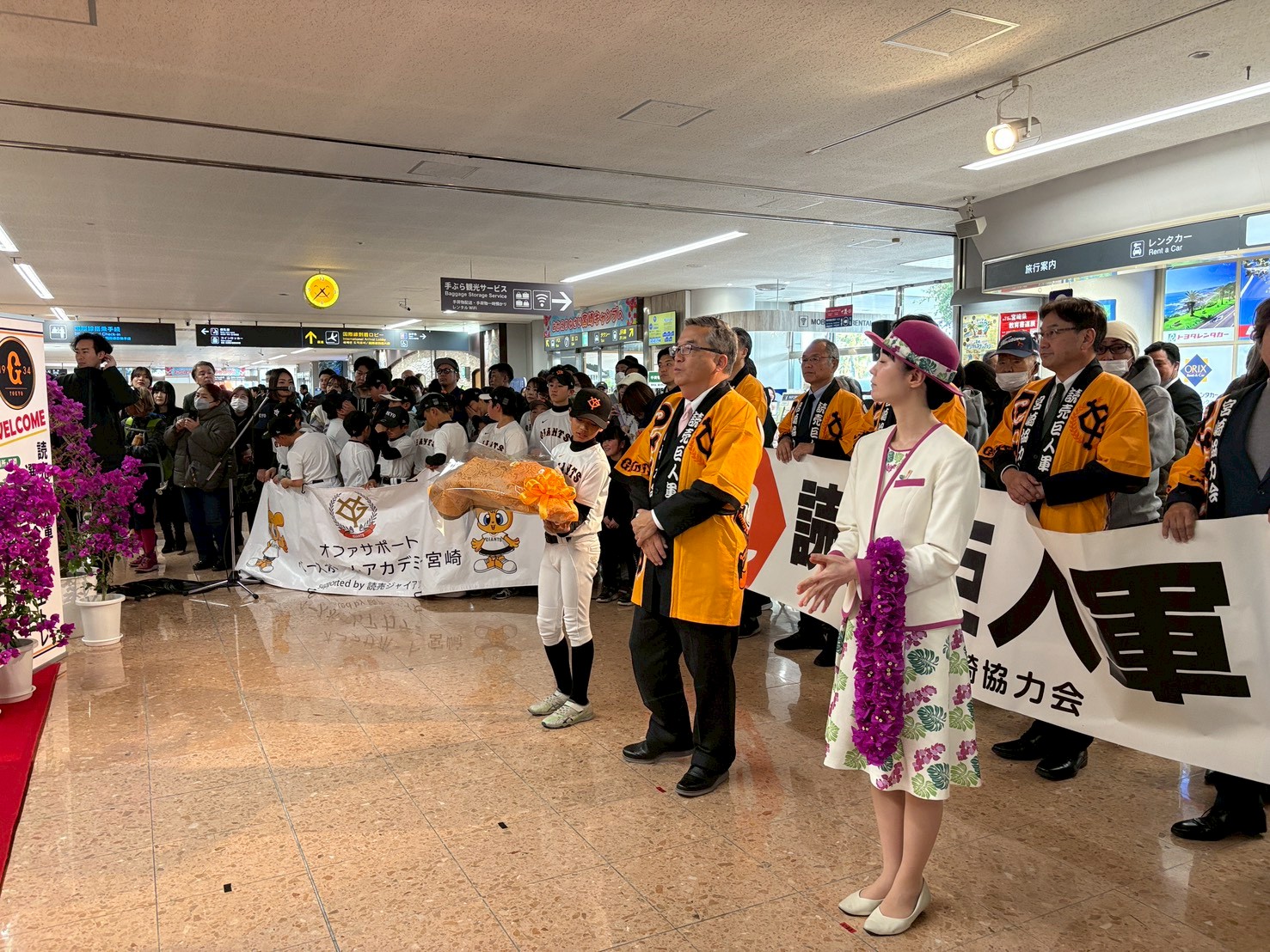 2026年1月27日(火)、宮崎空港にて行われた「読売巨人軍選手会 合同自主トレ」歓迎セレモニーに、弊社が運営するオファサポートBASEBALL ACADEMY 宮崎 Supported by 読売GIANTSのスクール生並びにコーチが参列いたしました。