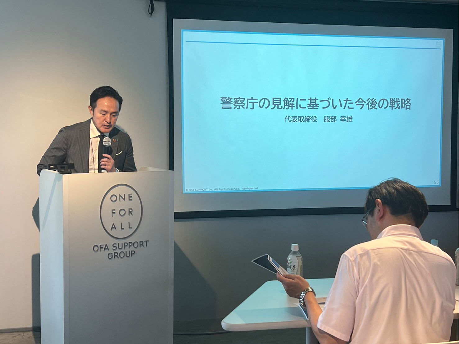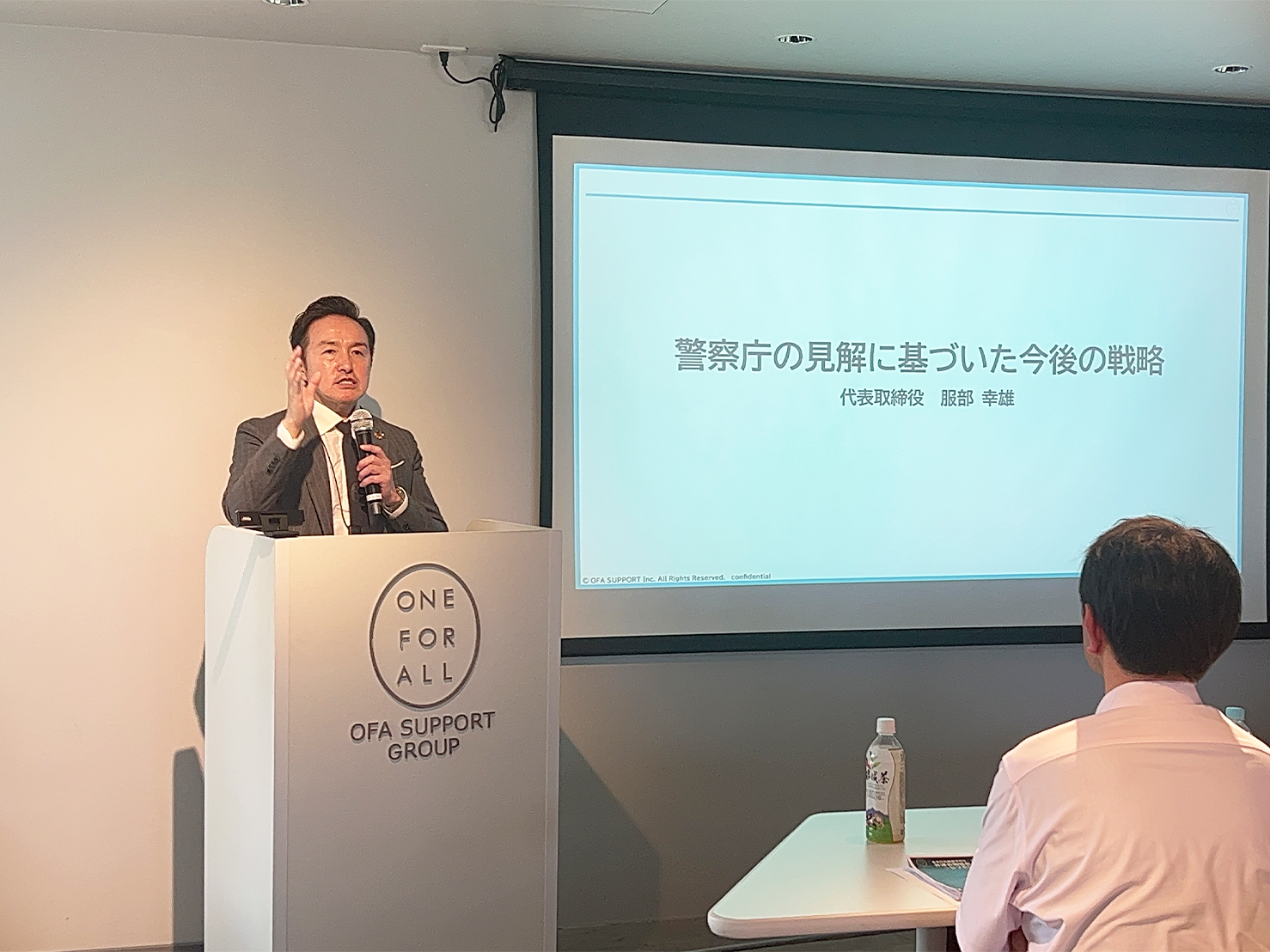 最後に、弊社代表服部が警察庁の最新見解を踏まえた今後の業界展望と戦略についてのお話をいたしました。