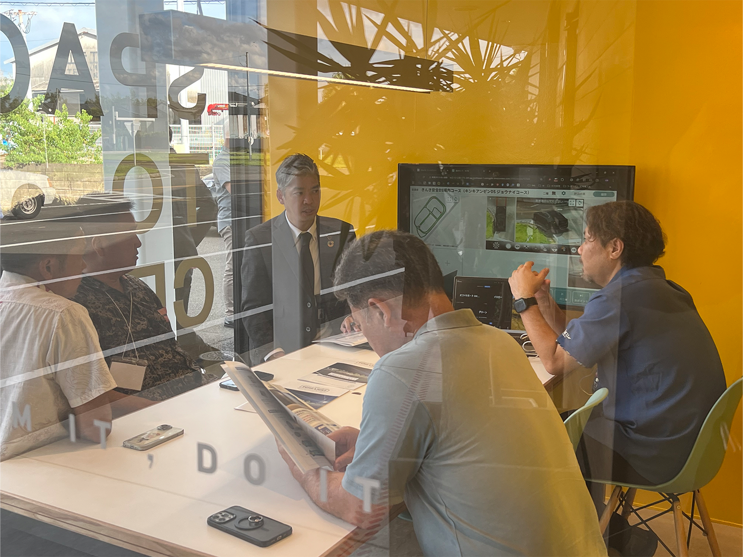 その後、セフモ体験、トレーラー施設見学、外国人受け入れ支援・保険代理店・宿泊施設提案をブースにて個別に質疑応答に対応させていただきました。