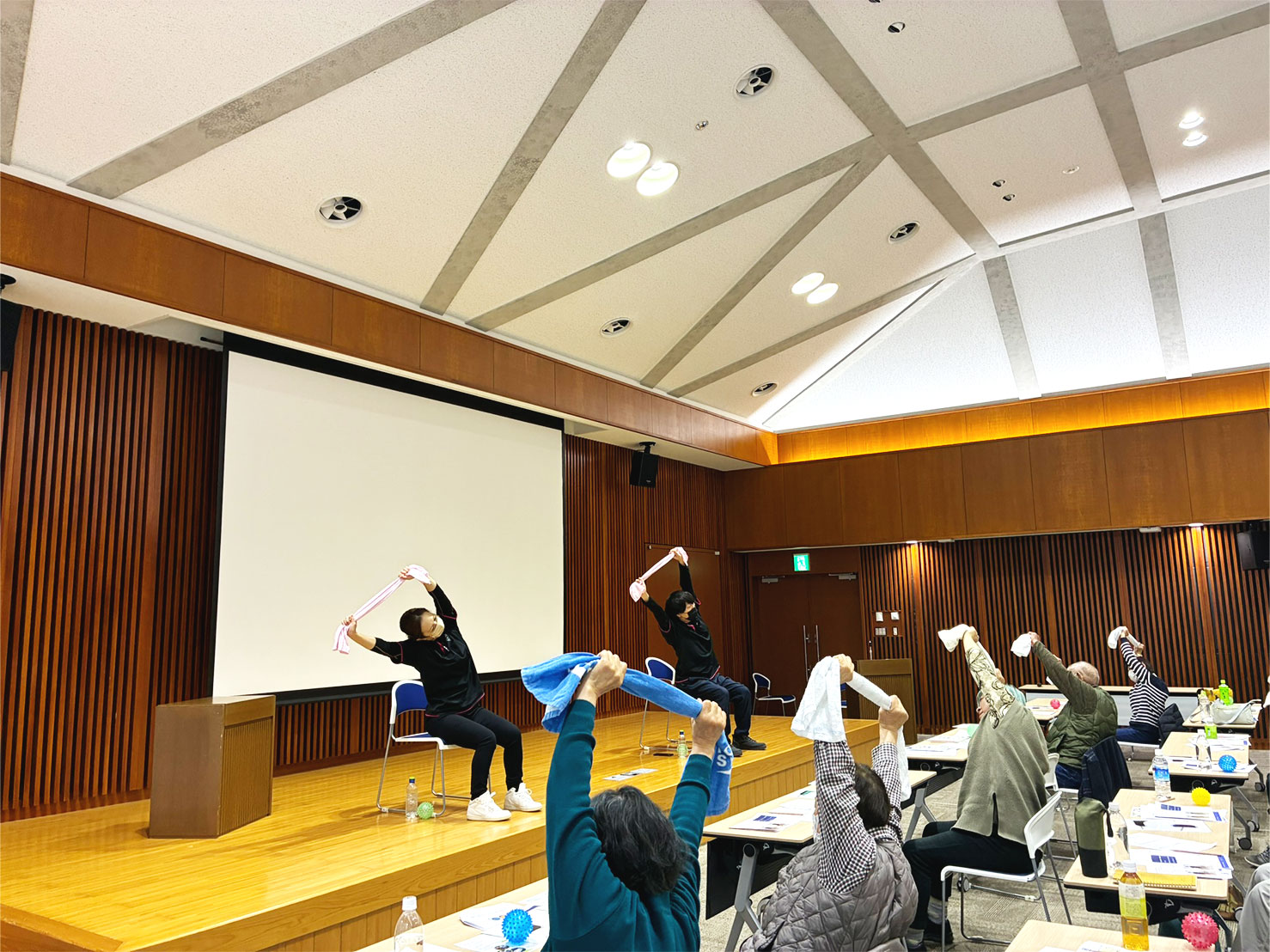 手や指を使った動き、反応を確かめる簡単な動作、筆記による脳トレなどを通して、普段の生活では気づきにくい身体の動きや状態を、改めて確認していただく時間となりました。